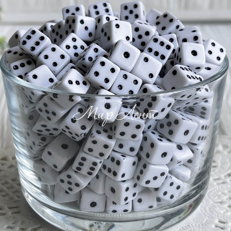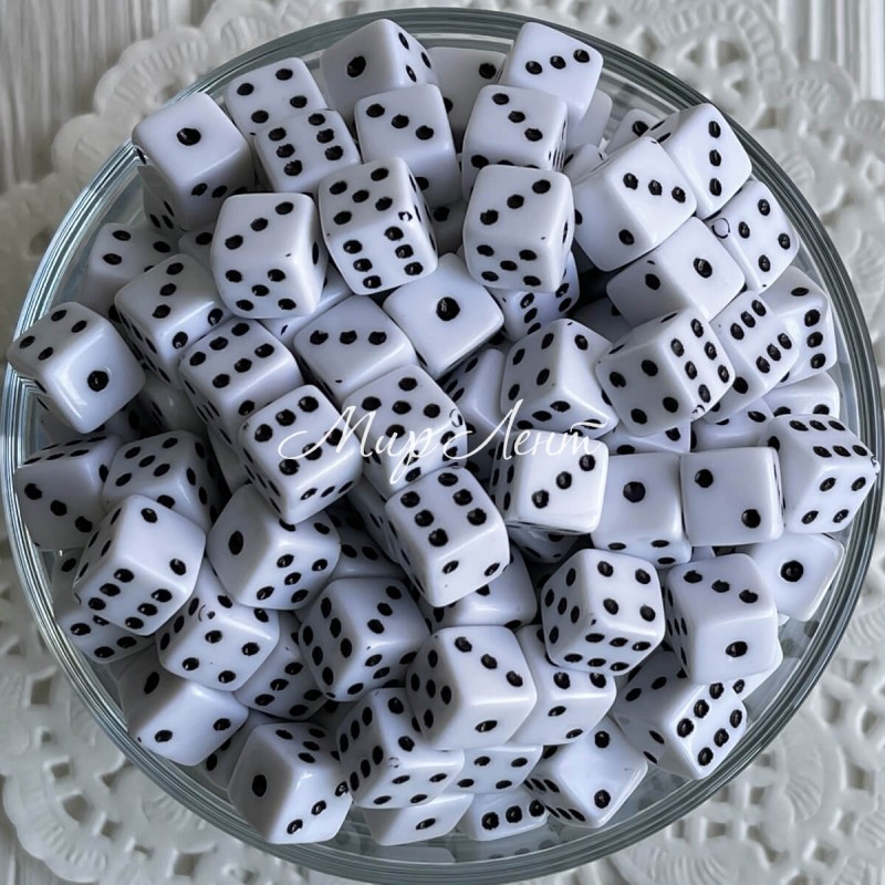 Бусина ігровий кубик, 10 мм, білий, упаковка 500 г