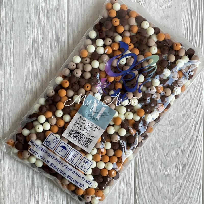 Бусина матова "Зефірка", 10 мм, коричневий мікс, упаковка 500 грам