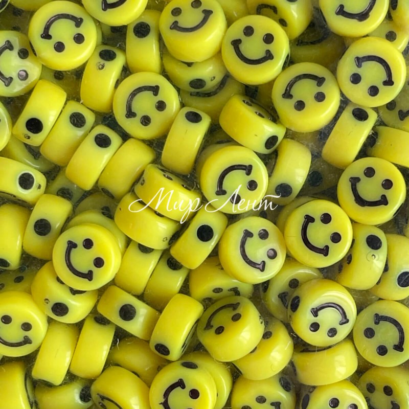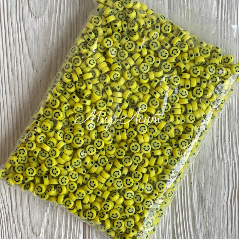 Бусина смайлик, 10 мм, жовтий, упаковка 500 г