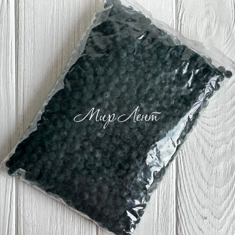 Намистини оксамитові, 10 мм, темно-зелені, упаковка 500 г