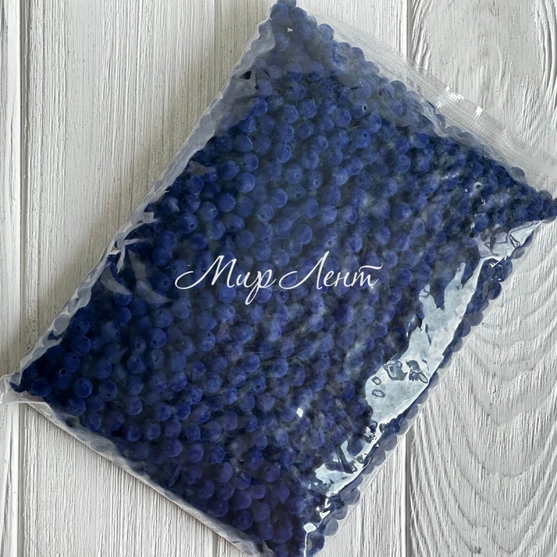 Намистини оксамитові, 8 мм, темно-сині, упаковка 500 г