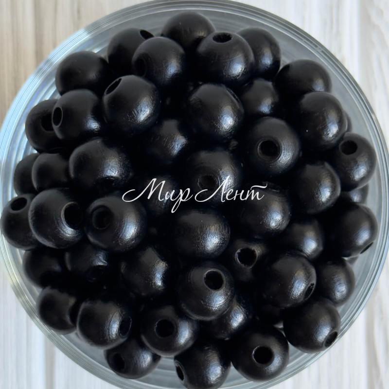 Дерев'яні намистини круглі, 12 мм, чорні, упаковка 500 г