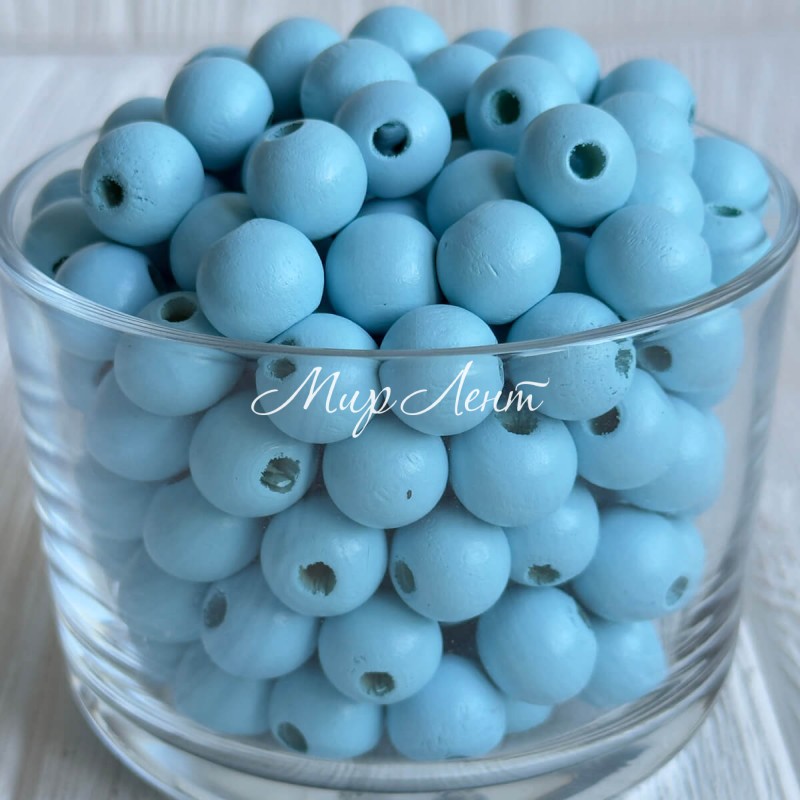 Дерев'яні намистини круглі, 16 мм, блакитні, упаковка 500 г