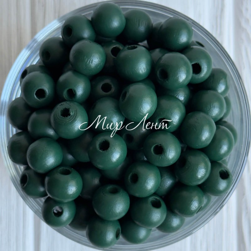 Дерев'яні намистини круглі, 16 мм, темно-зелені, упаковка 500 г