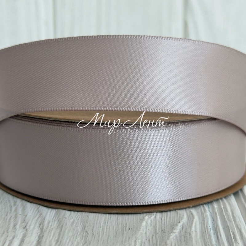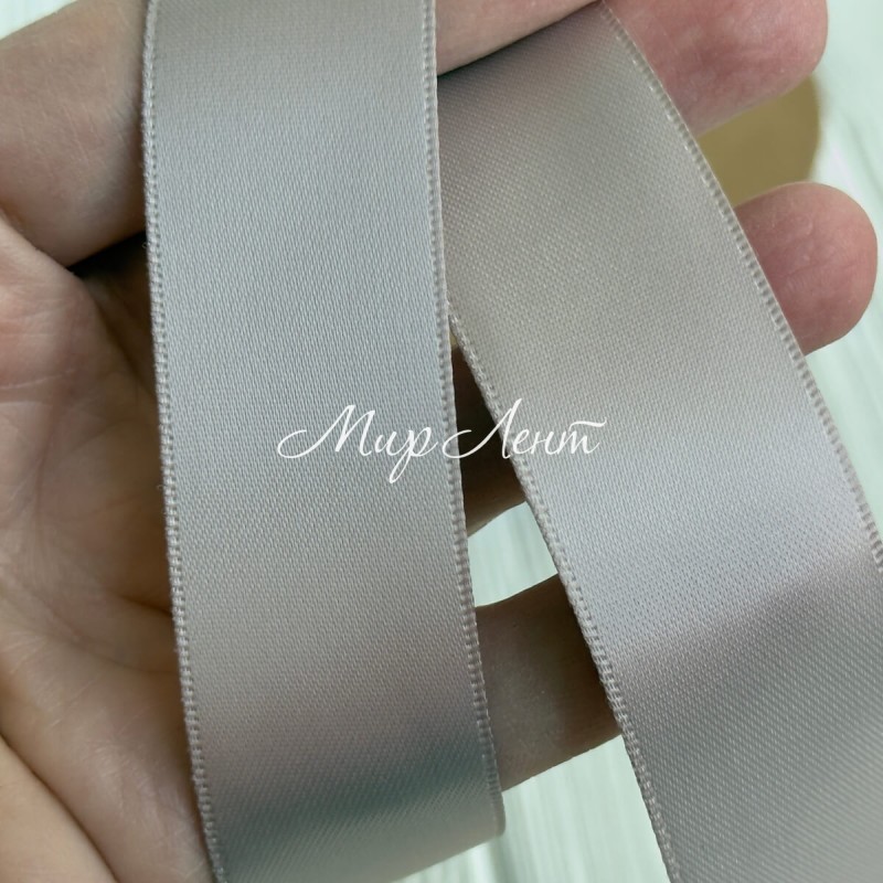 Двостороння атласна стрічка New (преміум), 2,5 см, бежево-сіра, рулон 23 м