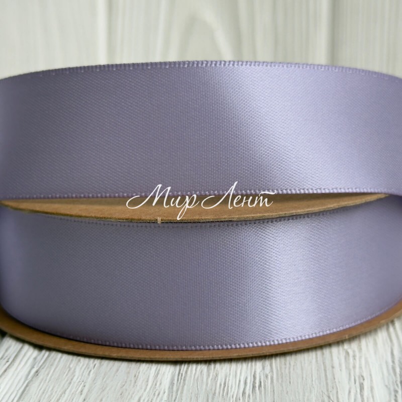 Двостороння атласна стрічка New (преміум), 2,5 см, димчаcто-лілова, рулон 23 м