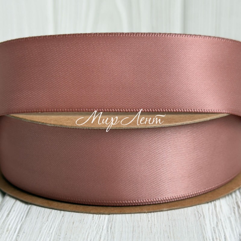 Двостороння атласна стрічка New (преміум), 2,5 см, пекан, рулон 23 м