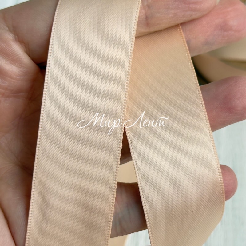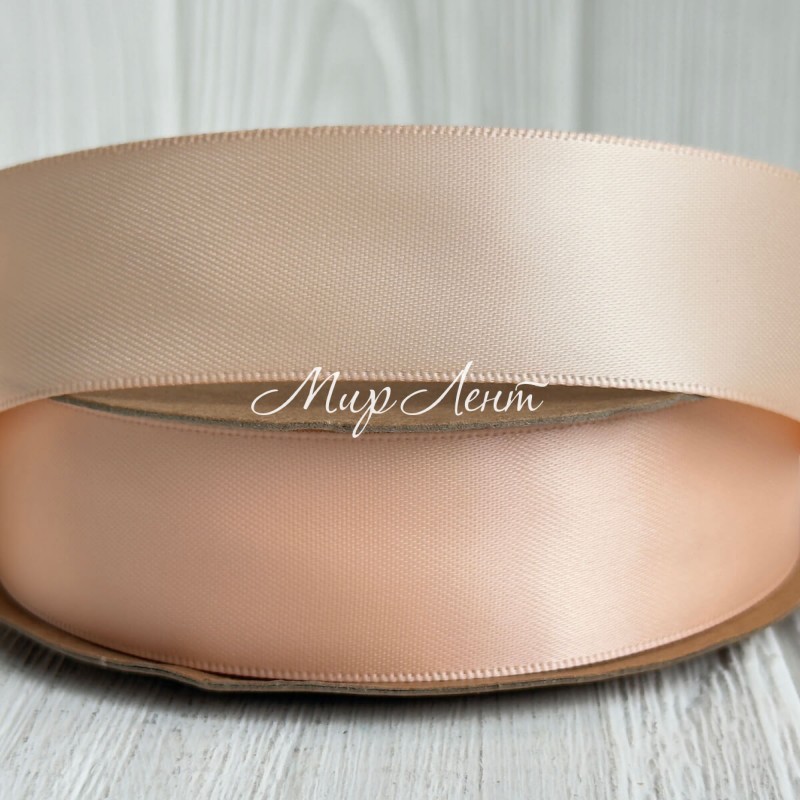 Двостороння атласна стрічка New (преміум), 2,5 см, персикова, рулон 23 м