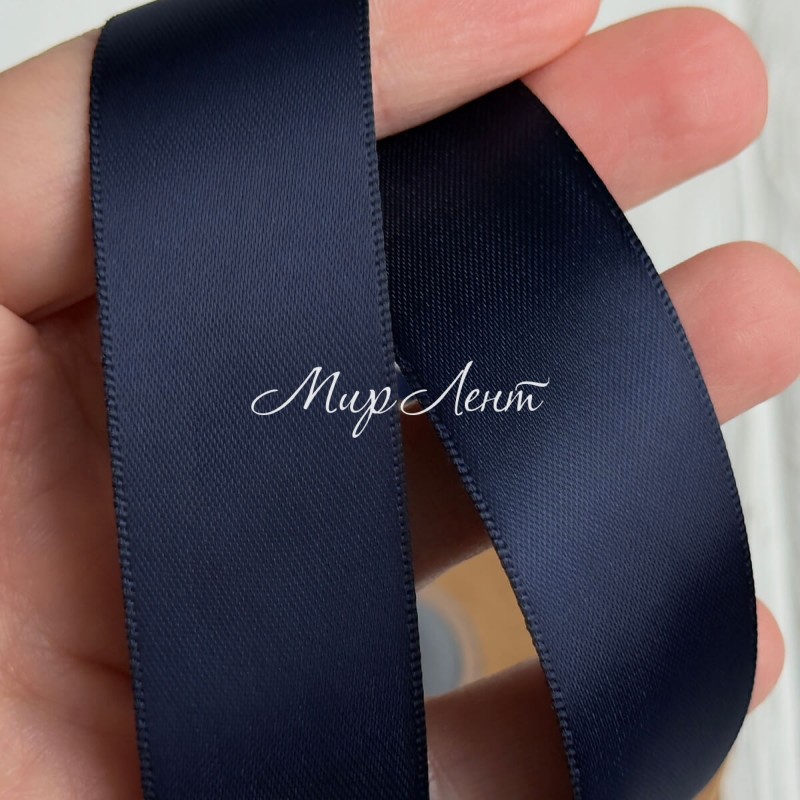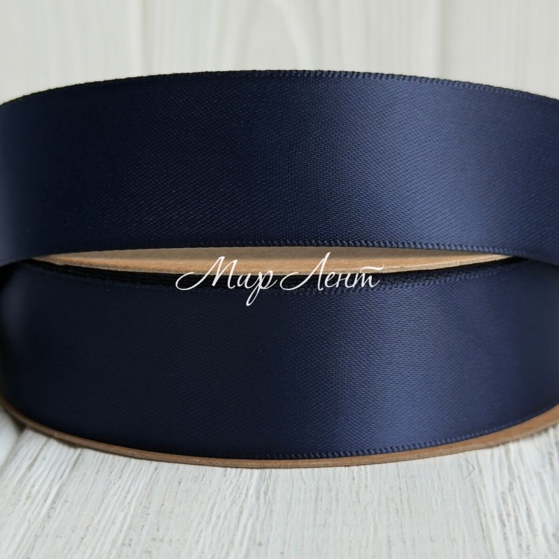 Двостороння атласна стрічка New (преміум), 2,5 см, сапфірова, рулон 23 м