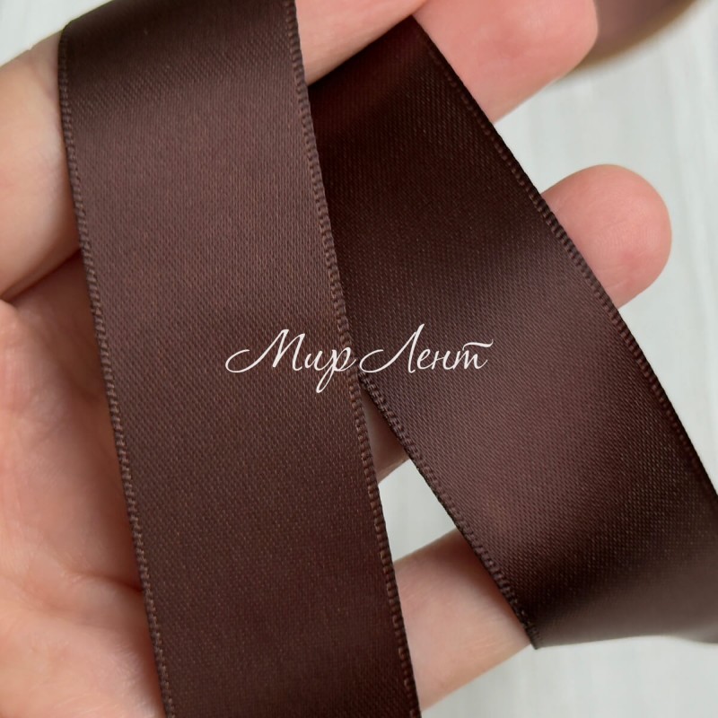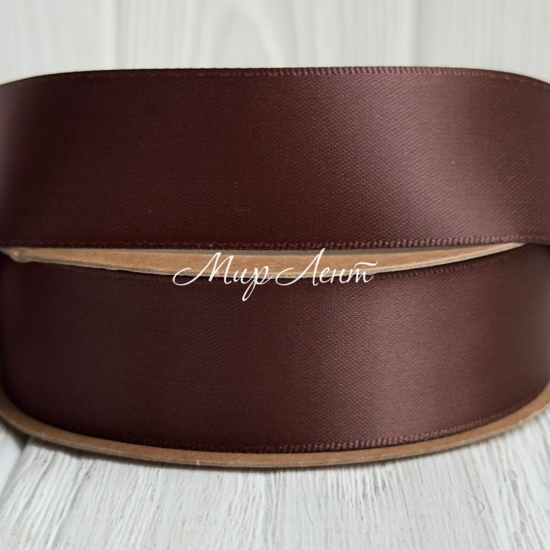 Двостороння атласна стрічка New (преміум), 2,5 см, темно-шоколадна, рулон 23 м