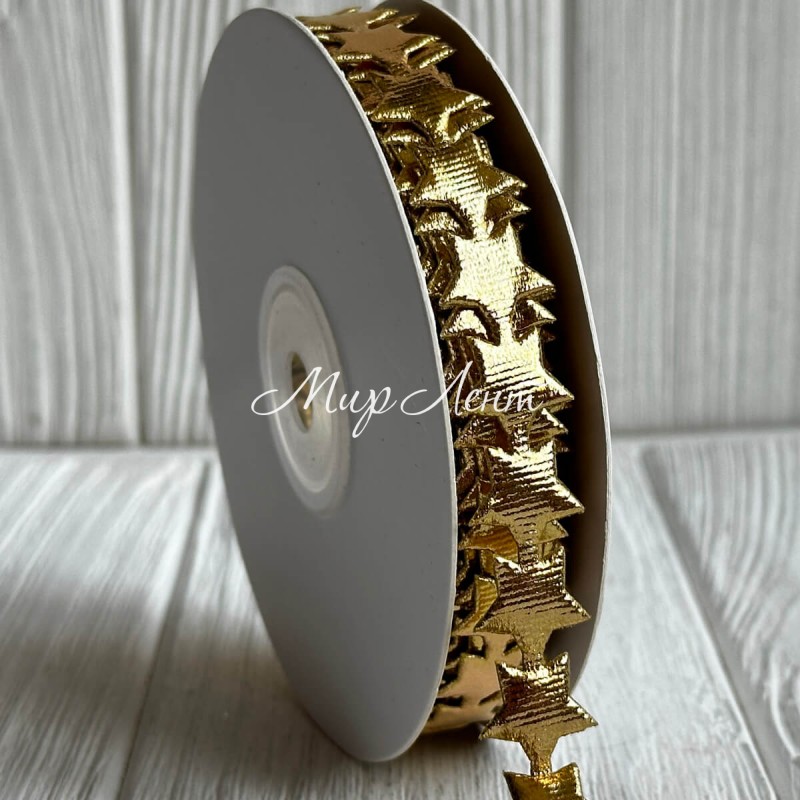 Фігурна стрічка зірочка, 15 мм, золото, рулон 10 м