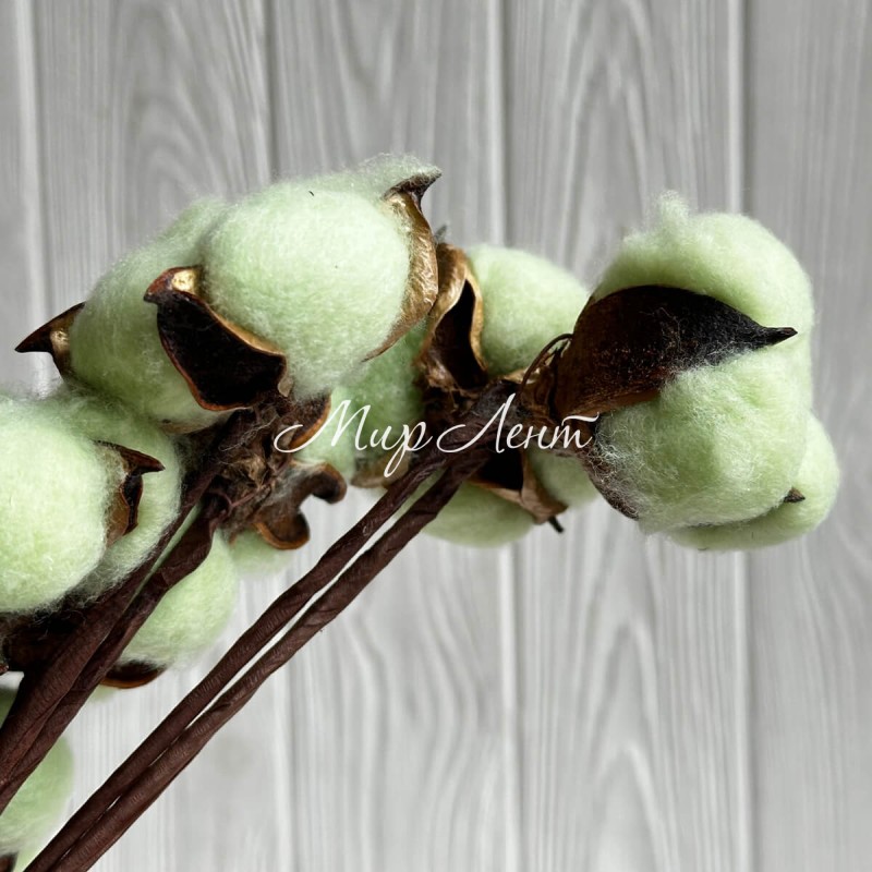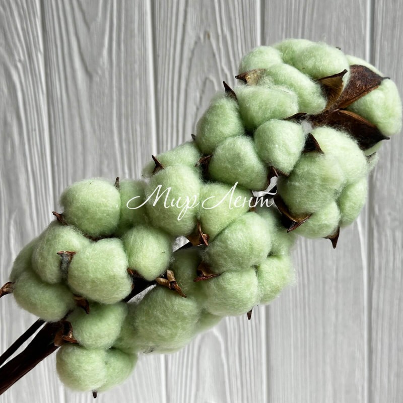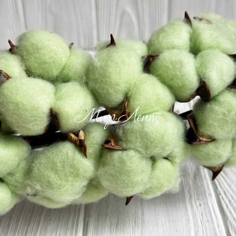 Бавовна стабілізована на ніжці, 38 см, світло-зелений, упаковка 10 шт.