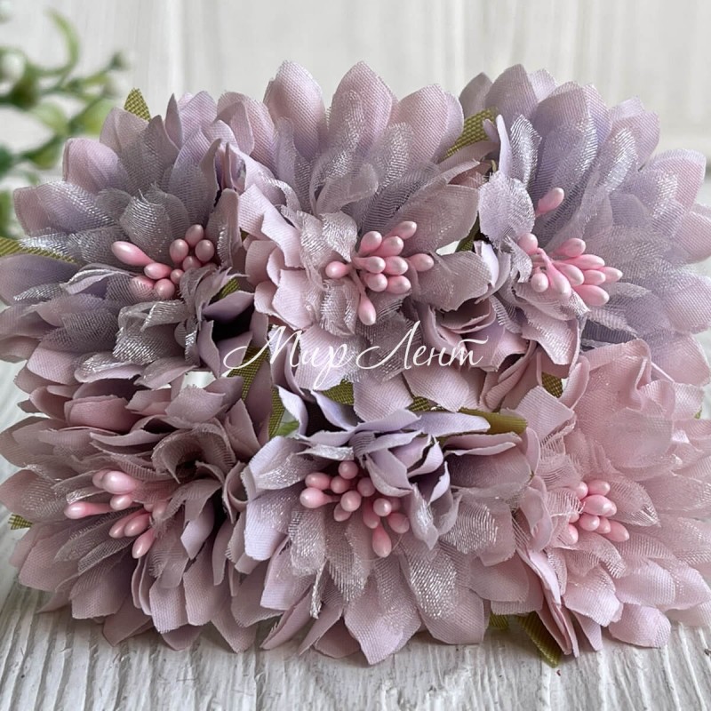 Хризантема тканинна з фатином, 4 см, лілово-рожева, упаковка 48 шт.