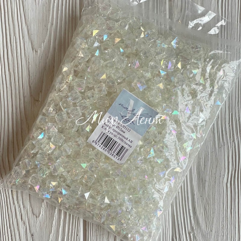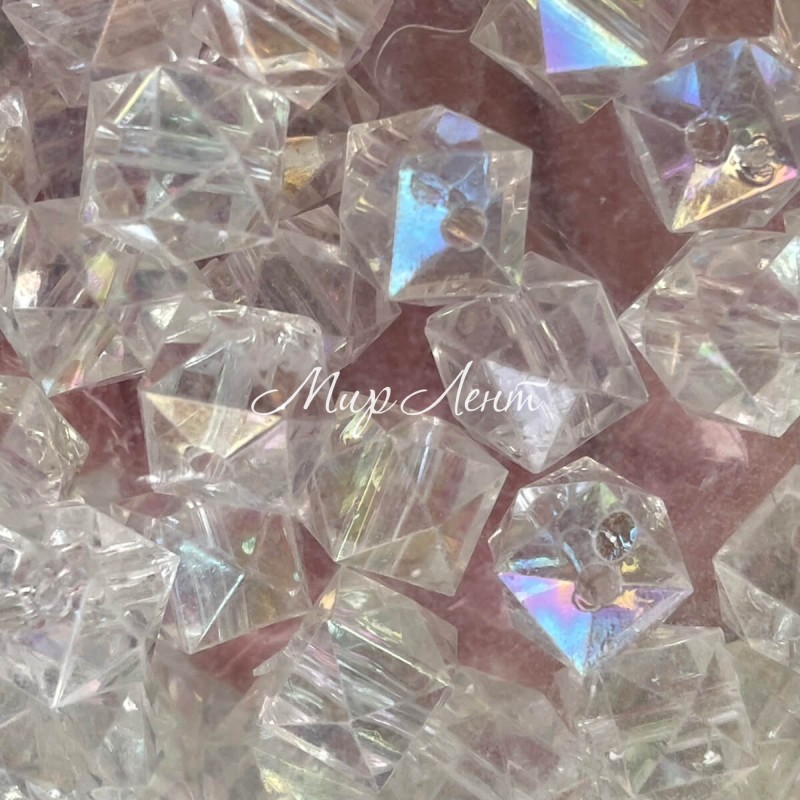 Кришталь (кубовидний), 12 мм, прозорий перламутр (пластик), упаковка 500 г