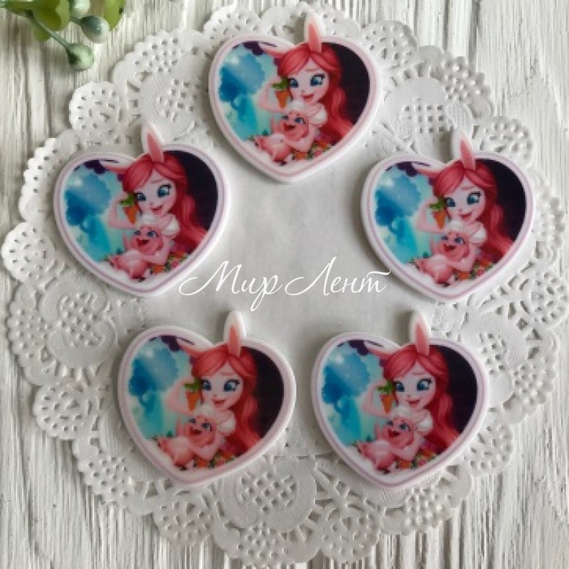 Кабошон Enchantimals, 3,5 см, серце з кроликом, упаковка 25 шт.