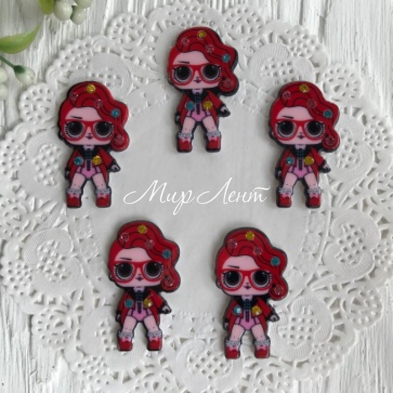 Кабошон Lol зі стразами, 3,5 см, Lol-рокер в червоному, упаковка 25 шт.
