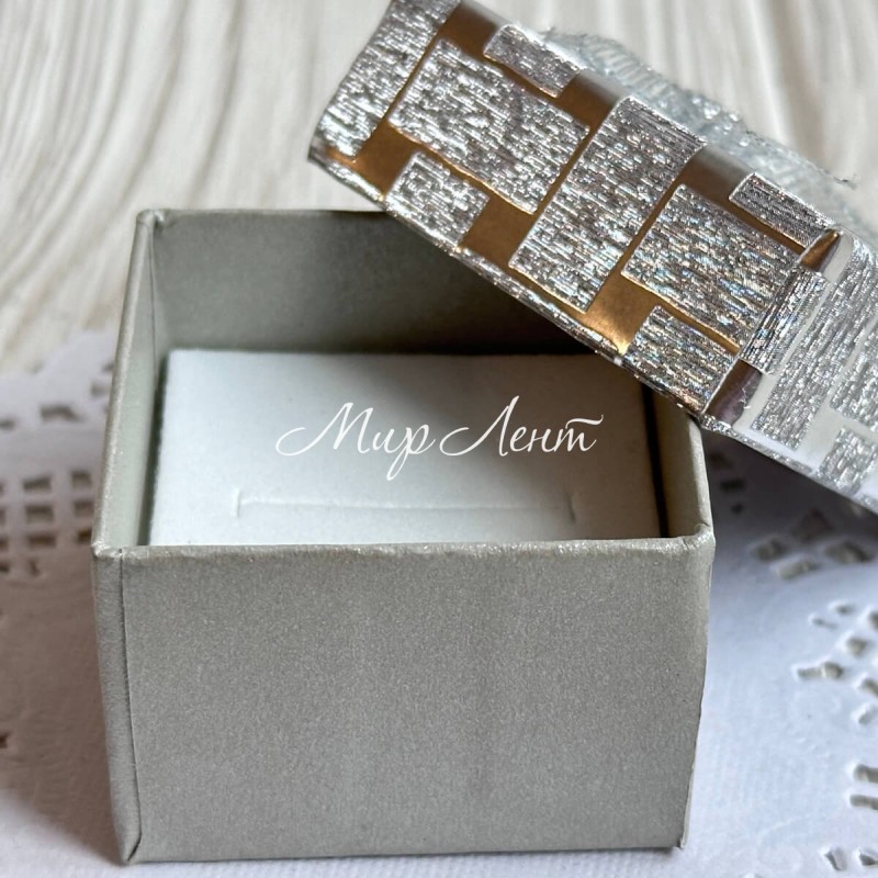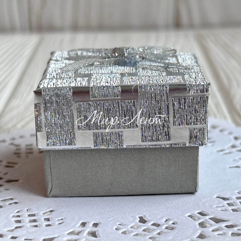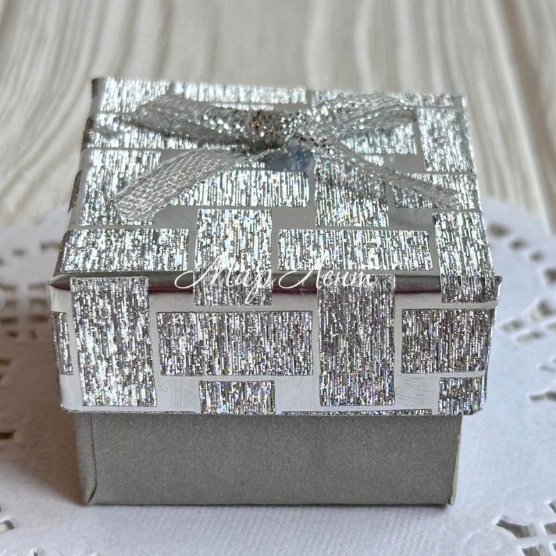 Коробочка для прикрас квадратна, 4,5х4,5х3 см, срібло, візерунок з парчовим бантиком, 1 шт.