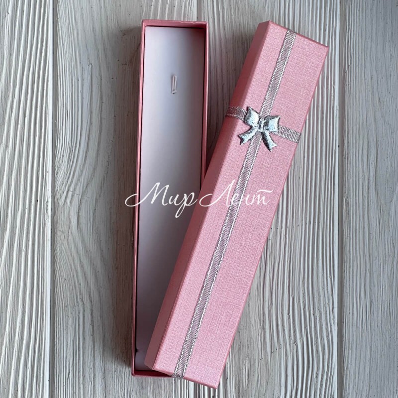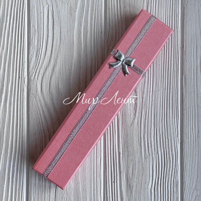 Коробочка для прикрас прямокутна, 21х4,3 см, рожева, з парчовою стрічкою, 1 шт.