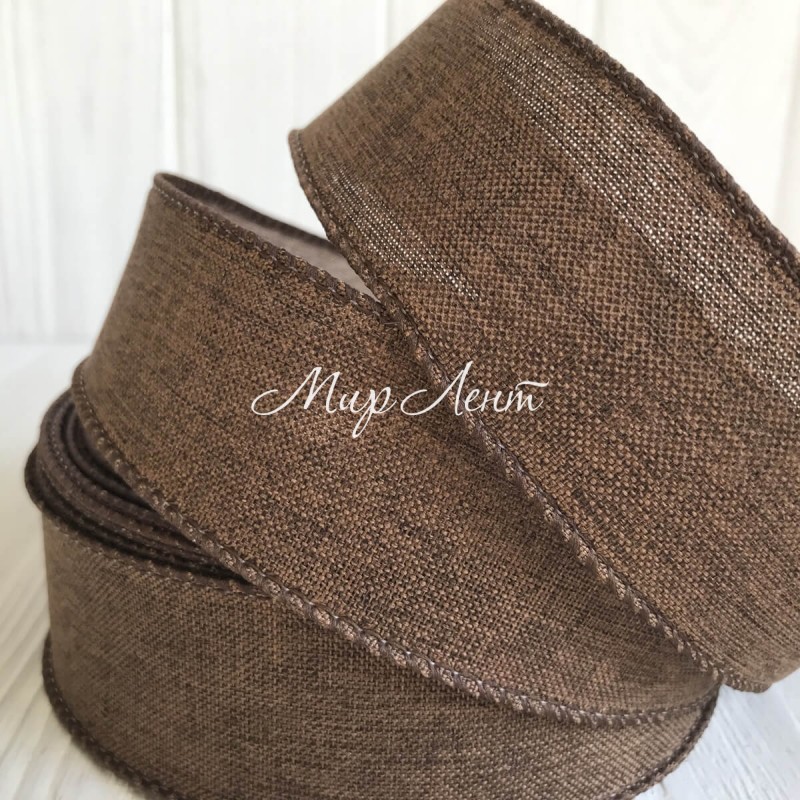 Котонова стрічка з проволочним кантом, 3,8 см, шоколадна, рулон 23 м