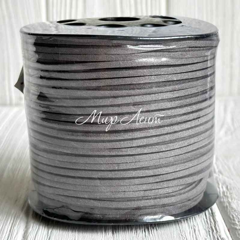 Шкіряний шнур, 0,26х1,4 см, сірий, рулон 90 м