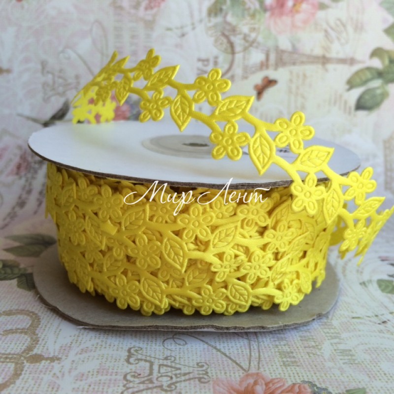 Мереживна стрічка квіточку березка, 2 см, жовтий, рулон 20 м