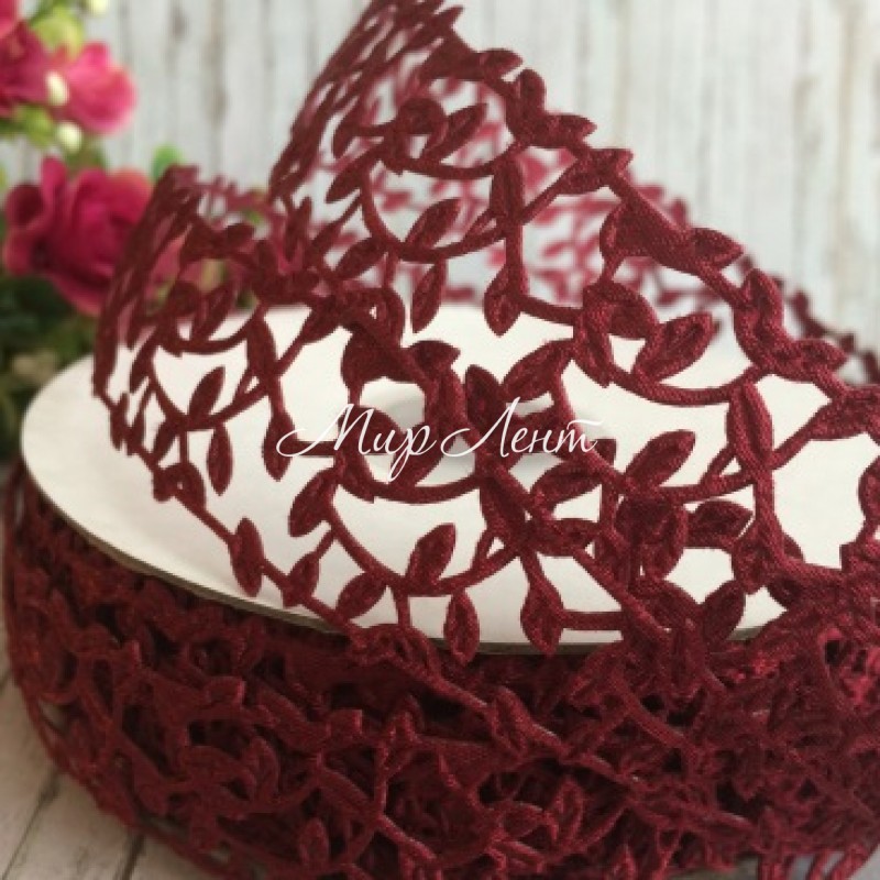 Мереживна стрічка Лавель, 3 см, бургунди, рулон 20 м