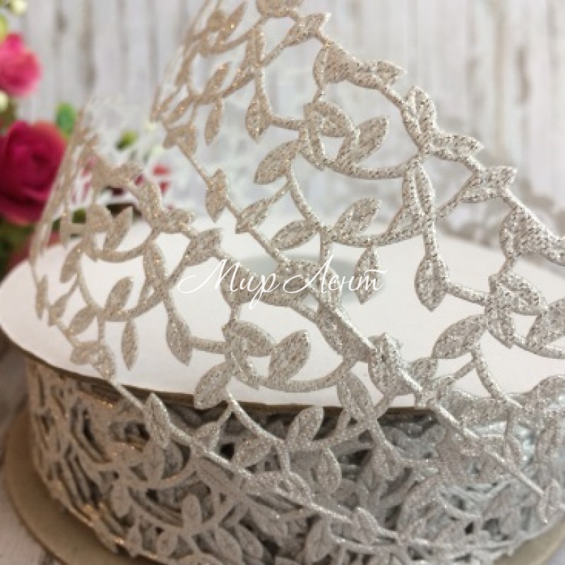 Мереживна стрічка Лавель, 3 см, срібло, рулон 20 м