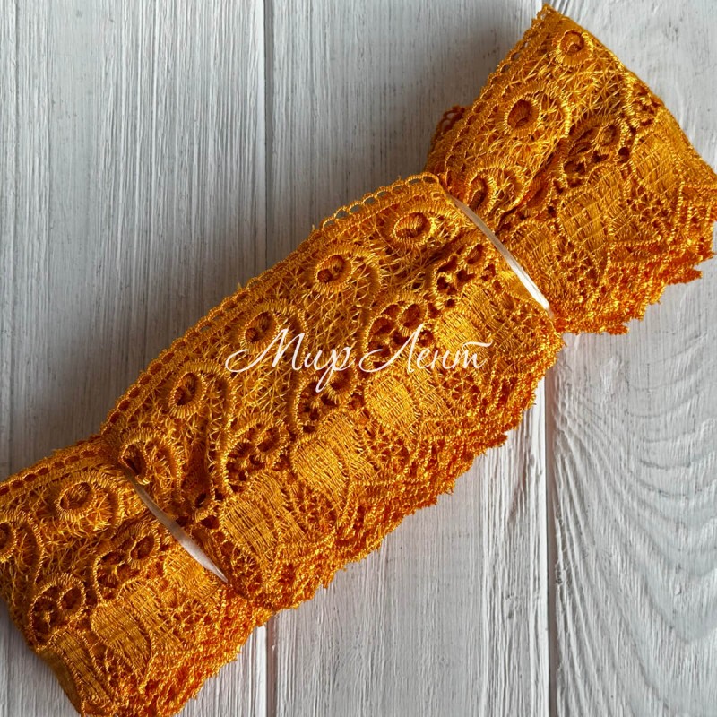 Мереживо макраме Тюльпан, 7 см, темно-жовте, рулон 9 м