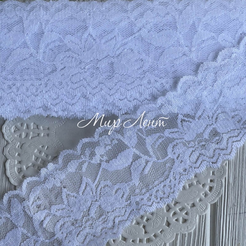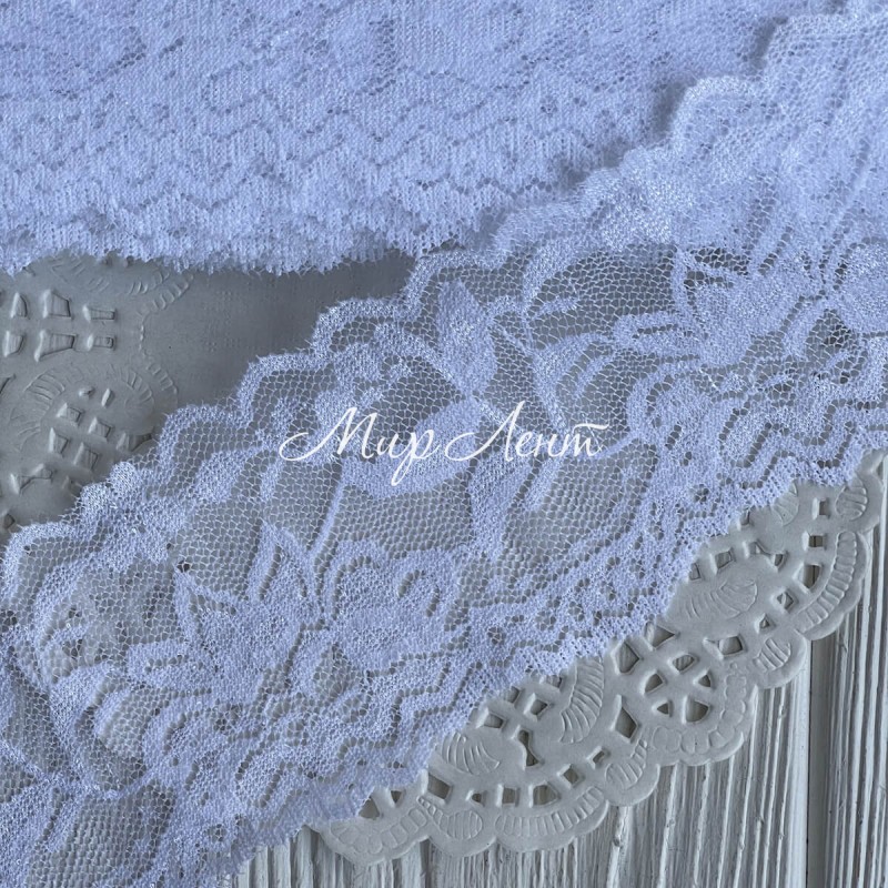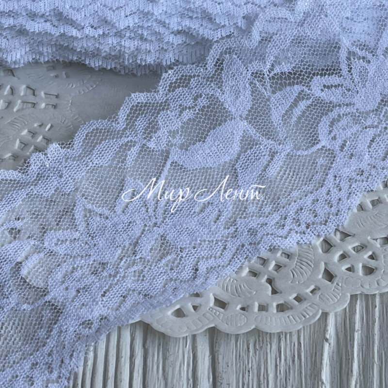 Мереживо стрейчеве з півоніями, 6 см, біле, рулон 9 м