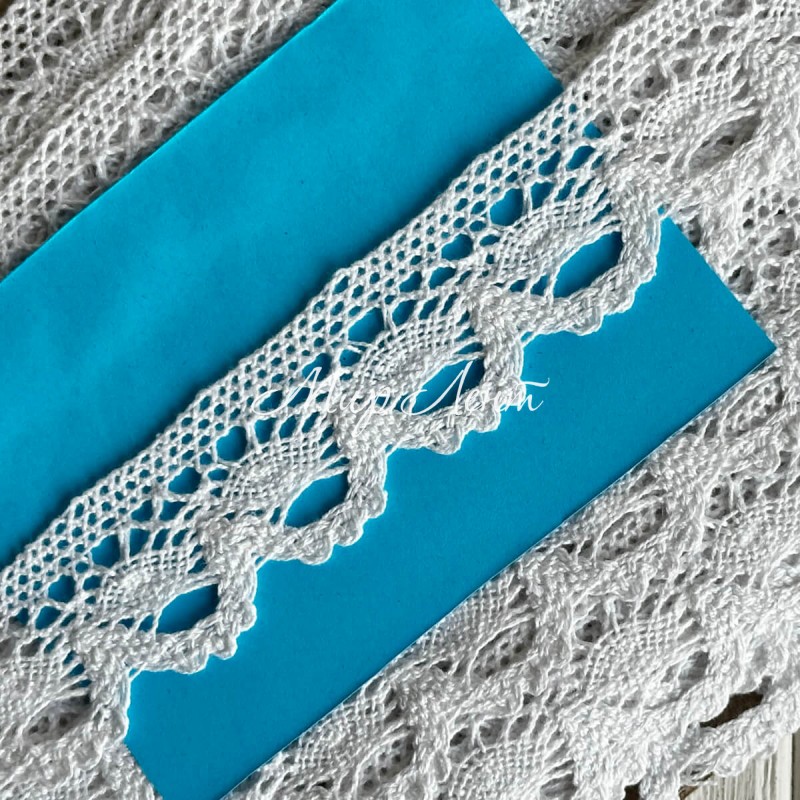Кружево вязане (D30099 / 3419), 3,3 см, біле, рулон 13 м