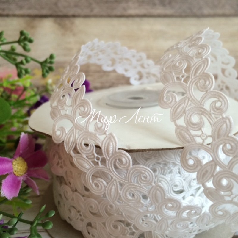 Стрічка-мереживо, 2 см, білий, рулон 20 м
