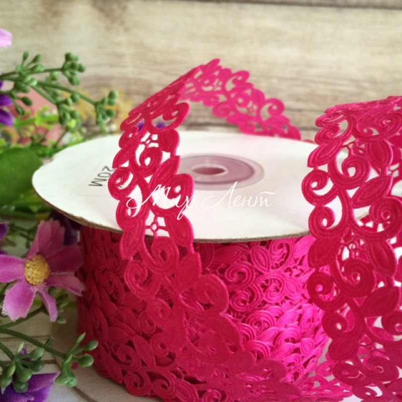 Стрічка-мереживо, 2 см, малиновий, рулон 20 м