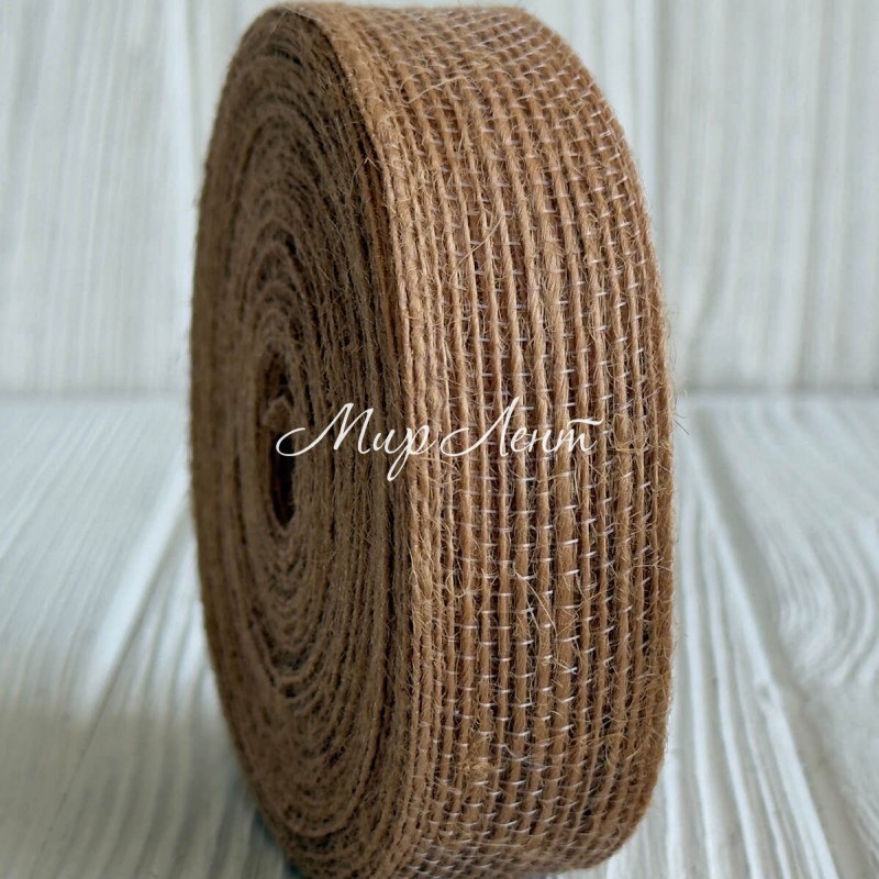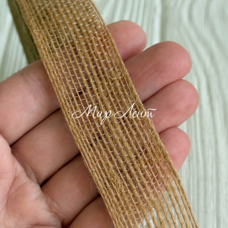 Стрічка мішковина волосінь (однотонна), 2,5 см, мокко, рулон 10 м