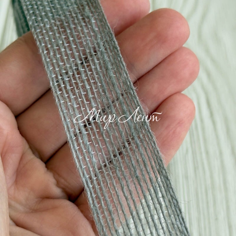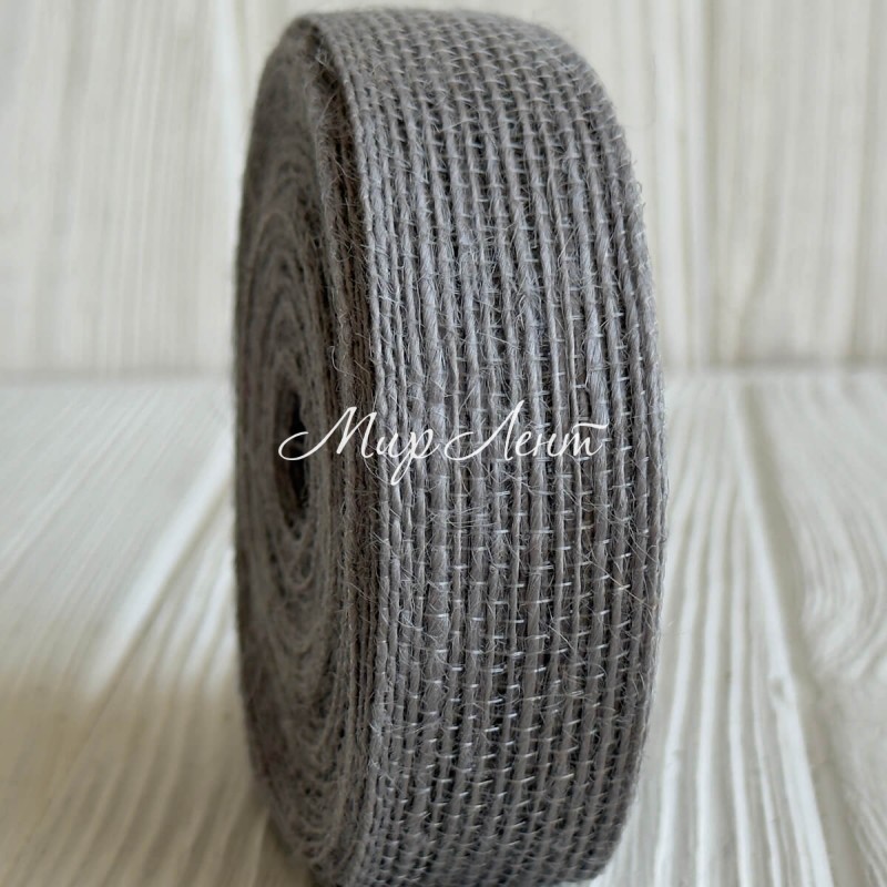Стрічка мішковина волосінь (однотонна), 2,5 см, сіра, рулон 10 м