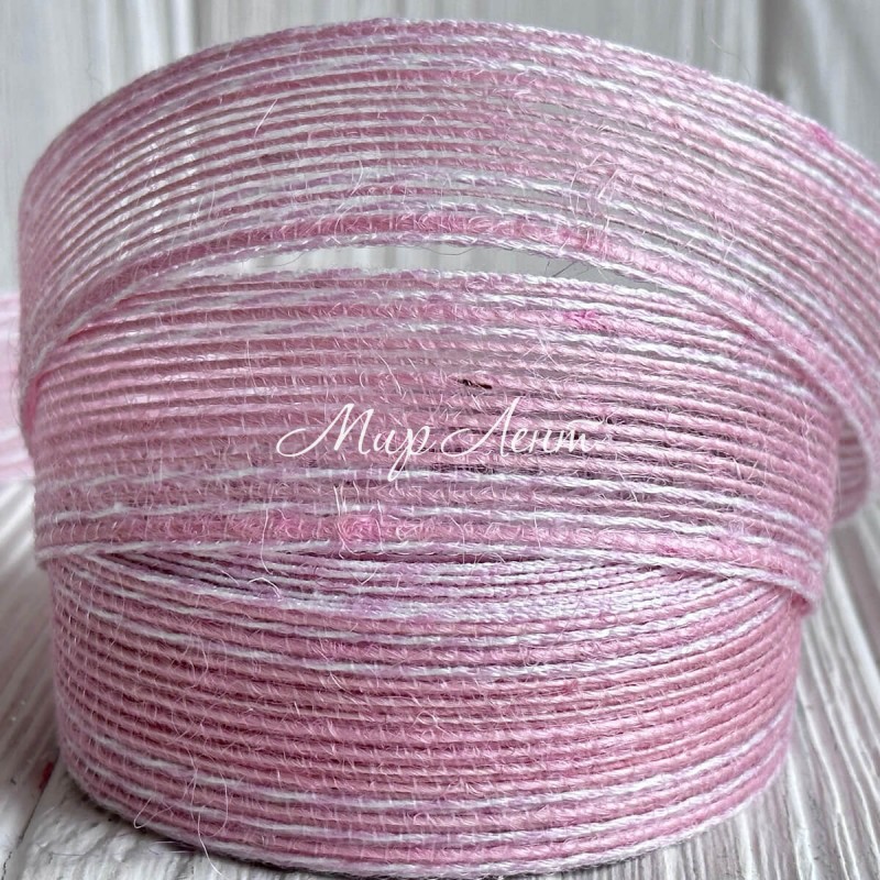Стрічка мішковина волосінь (з білою ниткою), 2,5 см, світло-рожева, рулон 9 м