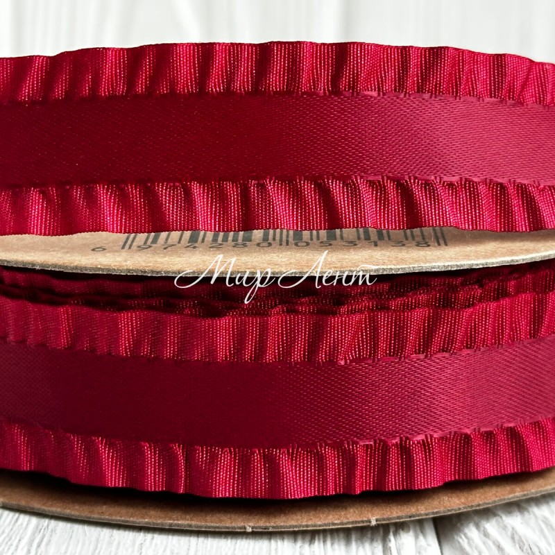 Стрічка-рюша, 2,5 см, бордовий, рулон 23 м