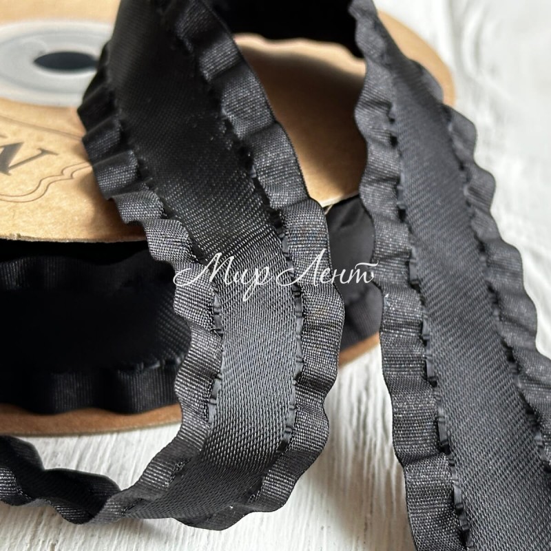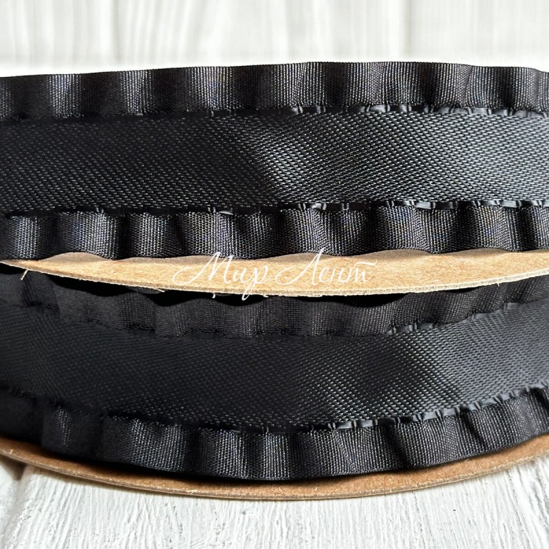 Стрічка-рюша, 2,5 см, чорна, рулон 23 м