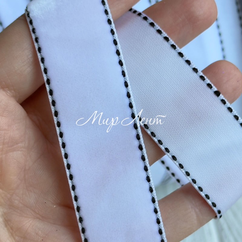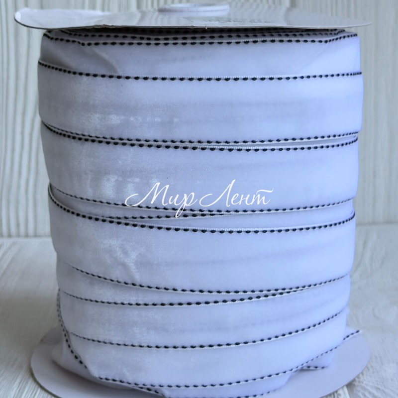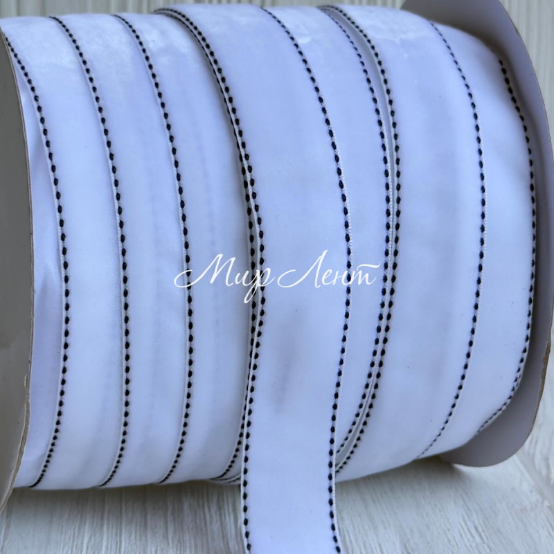 Стрічка велюр з кантом, 2,5 см, біла, рулон 45 м