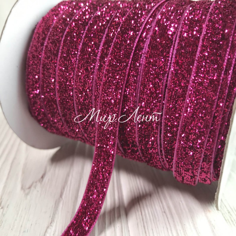 Стрічка велюр з люрексом, 1 cм, малиновий, рулон 45 м
