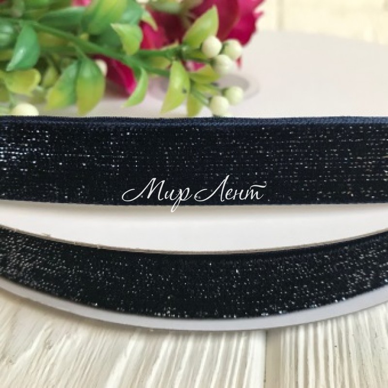 Стрічка велюр з люрексом 1,5 см, сапфіровий, рулон 18 м
