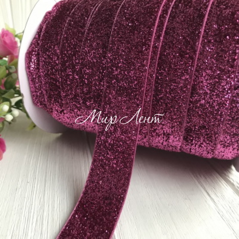 Стрічка велюр з люрексом, 2,5 см, малиновий, рулон 45 м