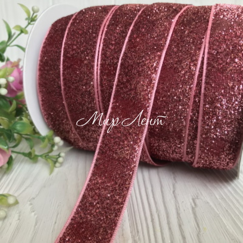Стрічка велюр з люрексом, 2,5 см, пюсовий, рулон 45 м