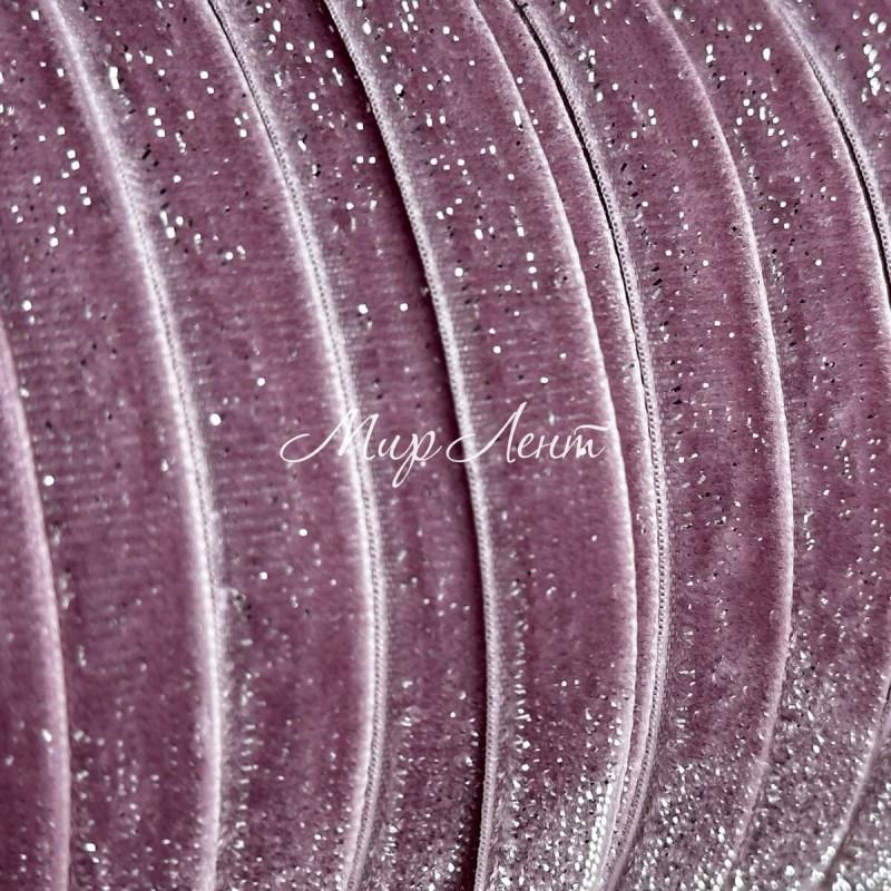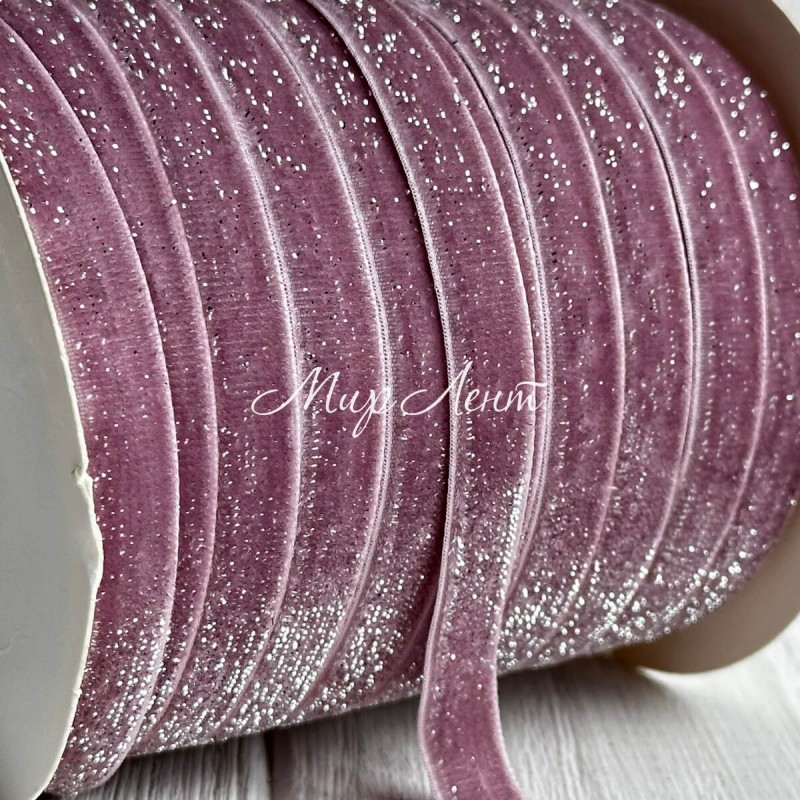 Стрічка велюр з перламутром, 1 cм, пудровий, рулон 45 м