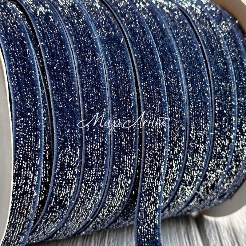 Стрічка велюр з перламутром, 1 cм, світло-синій, рулон 45 м