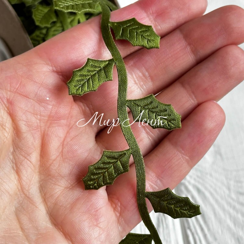 Стрічка листочок пуансетії, 1,7 см, зелена, рулон м