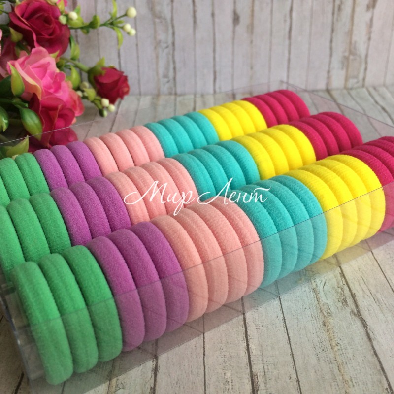 Набір резинок велюрчік, 3 см, малиново-жовто-м'ятний, упаковка 66 шт.