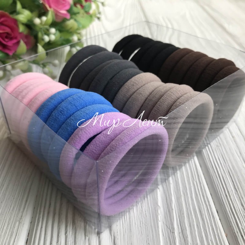 Набір резинок велюрчік, 4 см, бузково-бежево-коричневий, упаковка 30 шт.