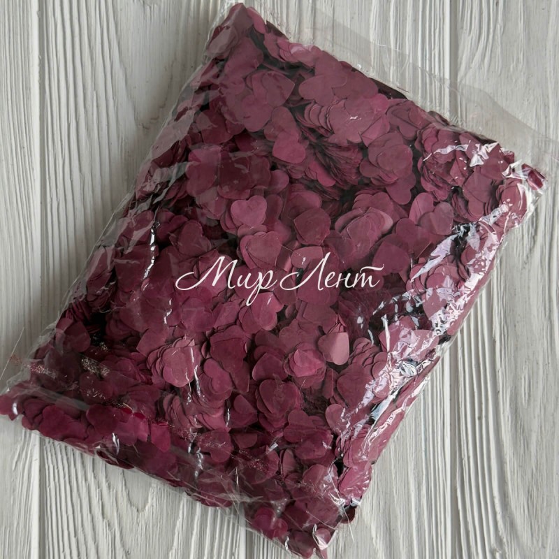 Наповнювач конфеті (сердечки), 12 мм, бордовий, упаковка 100 г