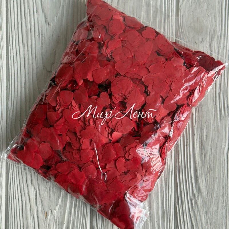 Наповнювач конфеті (сердечки), 12 мм, червоний, упаковка 100 г