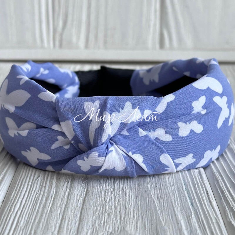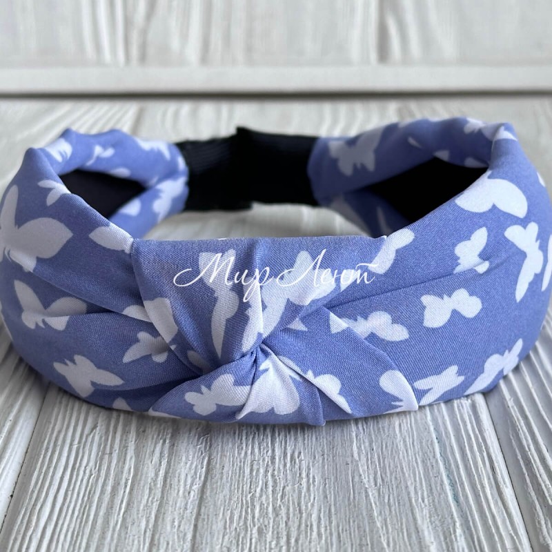 Обруч чалма з метеликами, 4 см, блакитно-ліловий, шт.